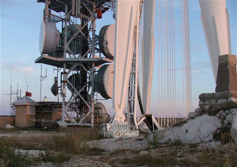 Na samém vrcholu se tyčí hned několik stožárů. Najdeme tu rozhlasové a televizní vysílače, dále základnové stanice mobilních sítí a spoustu dalších zařízení.