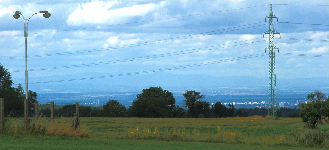 a bližší pohled na Pardubice (25 km), dobře je vidět i pardubická telekomunikační věž: